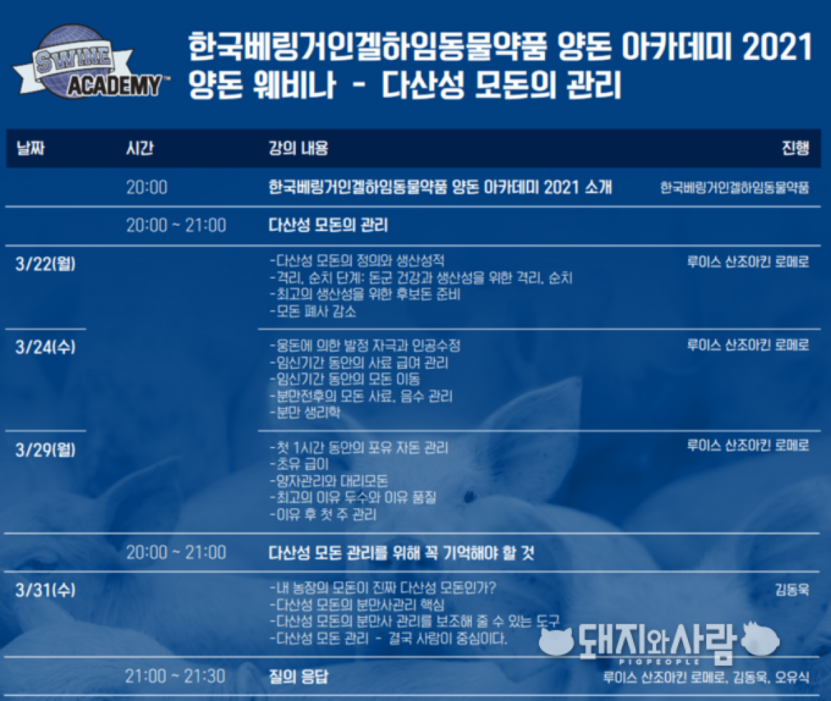 한국베링거인겔하임동물약품 양돈아카데미 2021 양돈웨비나@베링거인겔하임