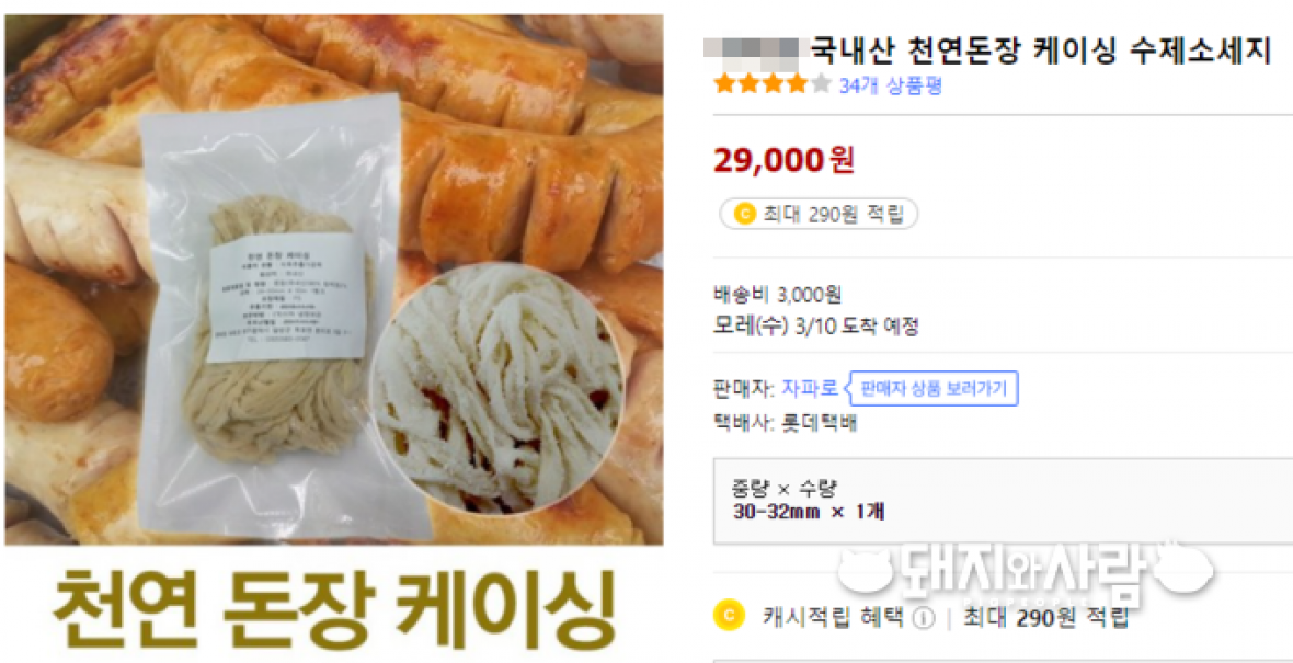 국내산 천연 돈장 케이싱, 쿠팡 홈페이지 갈무리