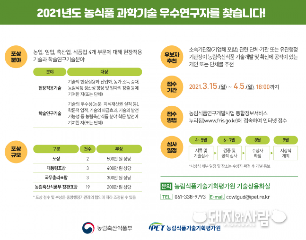 자세한 내용은 농림축산식품부(www.mafra.go.kr) 및 농림식품기술기획평가원(www.ipet.re.kr, www.fris.go.kr) 누리집에서 안내받을 수 있습니다.