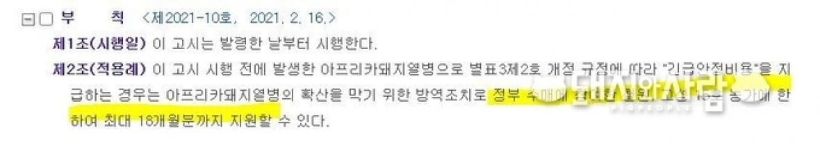 2019ASF 발생 관련 '수매'에 응한 농가에게 정부의 생계안정 지원자금이 이달 중 지급됩니다(관련 기사). 강제 수매 조치 후 거의 1년 반 만입니다.