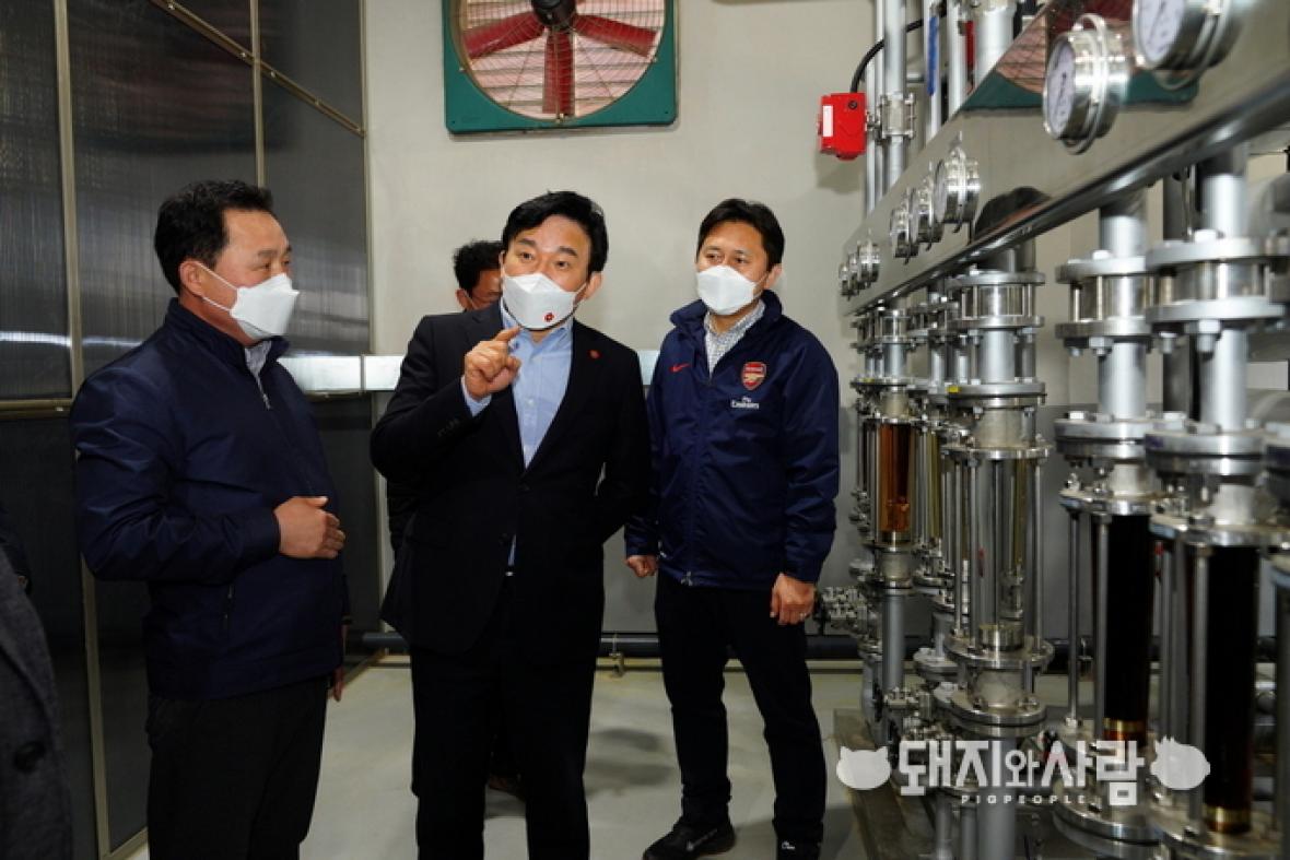 24일 제주시 한림읍에 위치한 제주양돈농협 가축분뇨 자원화공장에 방문한 원희룡 지사는 양돈농협 관계자와 양돈농가들과 간담회를 진행하고, 공장 내부 시설을 둘러보며 가축분뇨가 정화되는 과정을 확인했습니다.