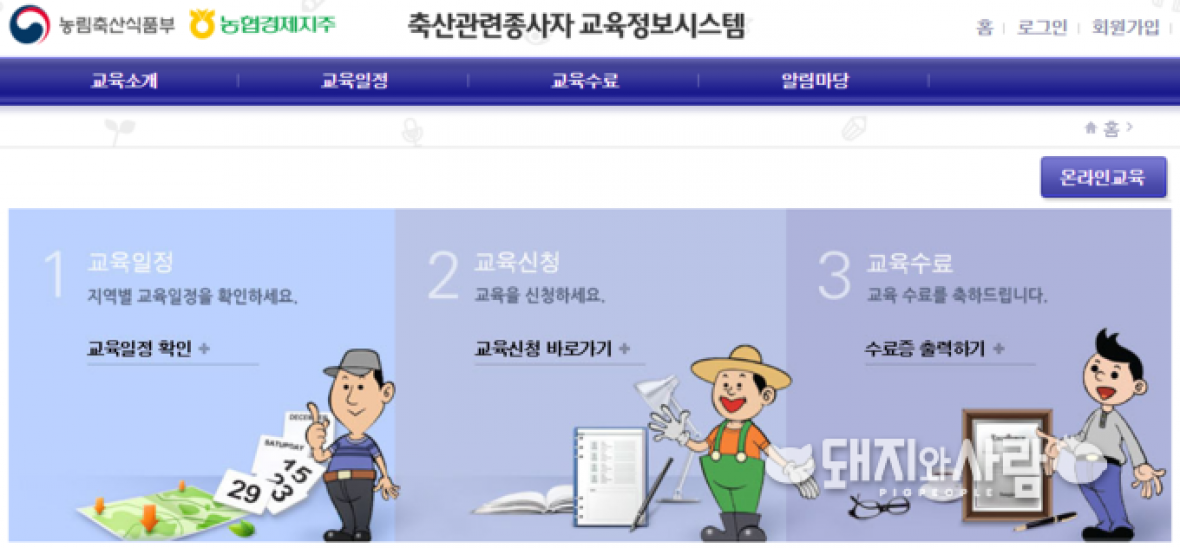 축산관련종사자 교육정보시스템 홈페이지 갈무리