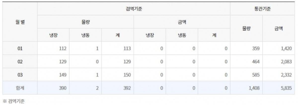 육류유통수출협회에 따르면 올 1~3월 돼지고기 지육 수출 물량은 검역 기준 1408톤으로 집계, 전년 동기(682) 대비 배 이상 증가한 것으로 나타났다. 이는 중국 ASF(아프리카돼지열병) 발생으로 인한 홍콩의 한돈 수요 증가 및 국내 한돈유통업계가 한돈 뒷다리 재고 적체 해소를 위한 수출 확대 노력으로 풀이된다.