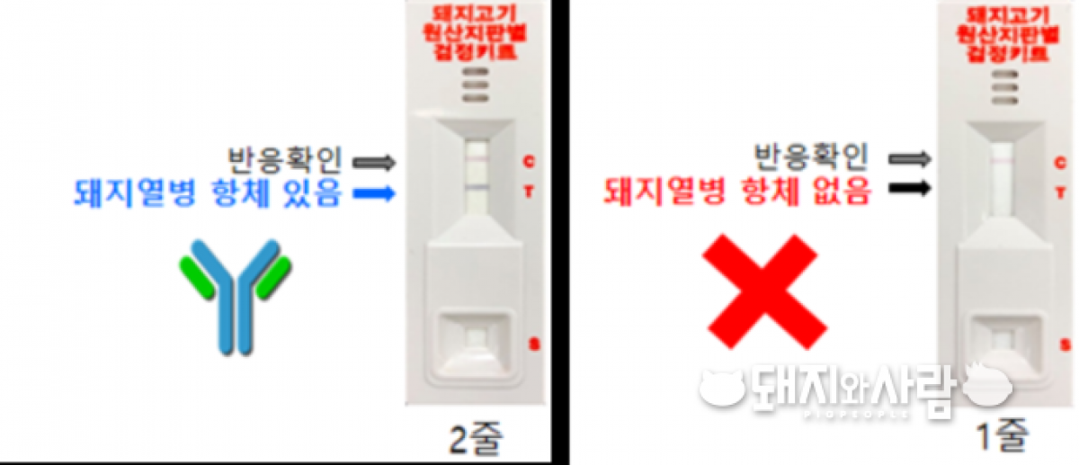 돼지고기 원산지 검사키트(돼지열병 항체가 있으면 2줄 국내산, 없으면 1줄 수입산)@농관원