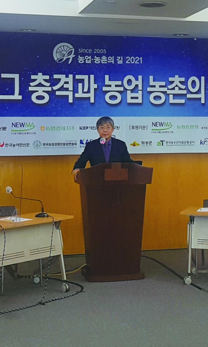농업·농촌의 길 2021 탄소중립 전환·코로나 팬데믹 등 거대한 변화 대응 식량안보, 지속가능한 식량시스템 만들 기회 스마트 정밀농업으로 전환 위해 ‘농가 단위’서 ‘국가 단위로’ 방향성 재정립 필요 식량농업 분야 정밀농업, 지속가능성 다양성·민관협력 바탕으로 체계 갖춰져야 원예작물, 수도작에 비해 드론 활용 낮아 국내 채소·과수 포장은 규모·형태에 적합한 드론 방제기술 필요 탄소중립이 지속가능성 확보는 아냐 축산 단독으로 탄소중립 목표 달성할 수 없어 경작 농업·산림과 협력해야 인구감소, 탄소중립 전환, 코로나 팬데믹 등으로 인한 거대한 변화 속에서 농업·농촌의 대응방안을 심도있게 논의하는 자리가 열렸다. 농업·농촌의길 2021 조직위원회는 지난 16~17일 유튜브 채널을 통해 ‘거대한 변화, 그 충격과 농업·농촌의 담대한 대응’이라는 주제로 심포지엄을 개최했다. 심포지엄 첫날인 16일에는 ▲1부 거대한 변화의 실체, 농업·농촌의 충격, 기회, 대응 ▲2부 스마트 정밀농업으로의 전환 ▲3부 거래와 유통의 디지털화와 물류 혁명 등의 주제로 발표와 토론이 이어졌으며, 17일에는 4부 특별분과별로 ▲동아시아 통살질서의 변화와 한반도의 미래 ▲농업·농촌의 현실과 신정부 농정방향 ▲한우산업 전망과 지속가능한 발전의 길 등을 주제로 해당 분야의 전문가들이 주제발표와 토론을 벌였다. 특히 이번 심포지엄에서 한국정밀농업연구소, 한국농수산대학과 공동으로 2부 세션을 맡아 거대한 변화의 물결 속에서 농업 현장이 직면한 문제 해결을 위해 ‘스마트 정밀농업’을 화두로, 다양한 현안과 개선 과제를 점검하는 자리를 마련했다. 농업·농촌의 길 2021의 주요 내용을 지상중계한다. [1부] 거대한 변화의 실체, 농업 농촌의 충격, 기회, 대응 ‘거대한 변화의 실체, 농업 농촌의 충격, 기회, 대응’을 주제로 진행된 1부 회의에서는 농업·농촌이 직면한 충격적인 도전에 대응해 나가기 위한 과제가 제시됐다. 특히 최근 세계적인 화두가 되고 있는 기후위기와 관련해서는 남재작 한국정밀농업연구소장의 ‘탄소중립 전환:농업 농촌의 충격, 기회, 대응’ 발표가 큰 관심을 모았다. 이날 남 소장은 우리 농업·농촌이 직면한 충격(도전과제)으로 △농업분야 탄소중립 △육류 소비 대체 △낮은 식량자급률 △평균기온 상승 △고령화·영세화 등을 꼽았다. 기후변화에 따라 탄소중립과 식량안보의 중요성이 강조되면서 새로운 농업기술의 개발과 적용이 필수적인데 현재의 여건으로는 불확실성이 확대되고, 디지털 기술 적응력이나 농가당 소유 농지 규모 등에서 대응에 어려움을 겪을 것으로 예상되고 있다는 것이다. 이에 디지털 인프라에 기반한 새로운 기술을 적용함에 있어 에너지와 세대교체 등 지속가능성과 관련한 문제 해결이 시급하다고 강조했다. 그러면서도 남 소장은 이러한 도전과 대응이 우리 농업·농촌이 탄소중립을 달성하고, 식량안보와 함께 지속가능한 식량시스템을 만들 수 있는 기회로 삼을 수 있다고 주장했다. 남 소장은 “탄소중립, 식량안보, 농촌의 세대교체를 동시에 달성하기 위해서는 저투입농법을 적용하면서도 수확량을 늘릴 수 있는 정밀농업의 확대와 이를 위한 정책 지원이 필수적”이라며 “이러한 농업의 디지털 전환이 청년들의 농촌 정착과 일자리 창출과 연계될 때 농업이 도전할만한 가치가 있는 산업이 될 것”이라고 말했다. [2부] 스마트 정밀농업으로의 전환 한국정밀농업연구소, 한국농수산대학, 본지 주관의 제2부에서는 ‘스마트 정밀농업으로의 전환’이라는 주제로 과학기술정책과 식량, 원예전문가들이 바라본 해결과제에 대한 심도있는 논의가 진행됐다. ■ 스마트 정밀농업의 동향과 정책개선 3대 과제 이주량 과학기술정책연구원 전략기획경영본부장은 스마트 정밀농업으로의 전환을 위해 ‘농가 단위에서 국가 단위로’ 방향성을 재정립해야 한다고 강조했다. ‘스마트 정밀농업의 동향과 정책개선 3대 과제’ 주제발표에서 이 본부장은 그동안 진행된 스마트농업 관련 정책들의 성과와 한계를 점검하고, 정책개선 3대 과제를 제시했다. 이 본부장에 따르면 2016년 4차 산업혁명 기술에 대한 기대감이 고조되면서 정부 주도의 스마트농업 추진이 본격화되기 시작했다. 이는 스마트팜을 중심으로 한 창업생태계 조성 지원과 스마트팜 혁신밸리 조성 등이 대표적이다. 이를 통해 농업분야에서 스마트농업 생태계가 활성화되기 시작했으며 대규모 스마트팜 연구개발(R&D) 투자가 확대되기 시작했다. 아울러 스마트팜 전문인력 육성 시스템이 구축됐으며 청년농을 비롯해 스마트팜과 관련한 스타트업 창업과 투자가 확대되는 등의 성과를 거둔 것으로 평가됐다. 그럼에도 불구하고 기술분야에만 집중해 인식과 제도의 혁신으로 연계시키거나 산업생태계에 변화를 일으키지는 못했다는 점은 한계로 지적됐다. 또한 소규모 농가의 체감효과가 미약하고 농가 간 갈등 유발, 지원조직 미비, 생산에서 유통을 아우르는 연계와 빅데이터 플랫폼 활용 미흡, 소농 중심의 정책과의 부조화 등도 관련 정책의 개선이 요구되는 부분으로 지목됐