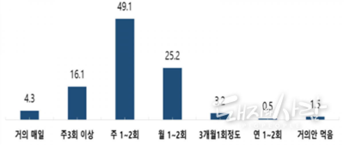 돼지고기 취식 빈도 (단위 %, 성인 남녀 1,500)@농촌진흥청