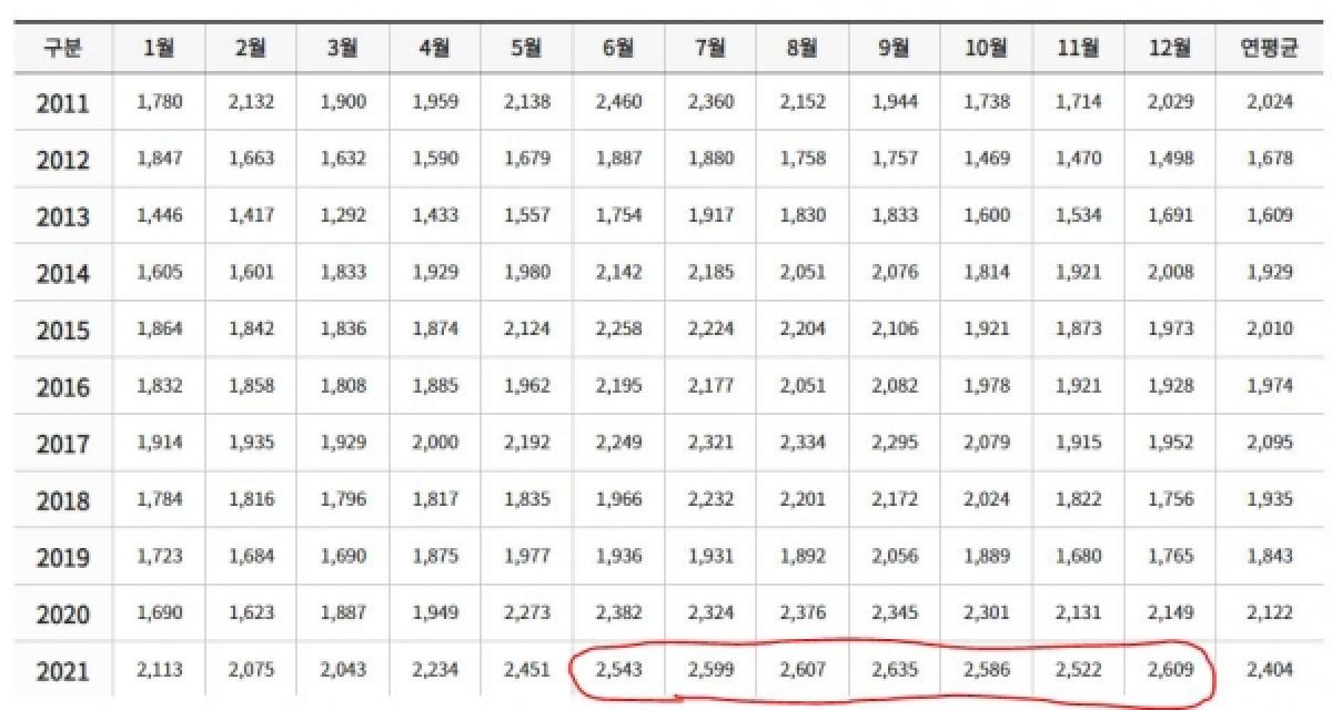 그러나 올해 월별 삼겹 가격 분포도를 살펴보면 aT 기준 1년 내내 kg2만원 이상이 형성되고 있으며, 특히 6월부터 11월까지 2500원 이상을 상회한 이후 삼겹 소비가 크게 줄었다.
