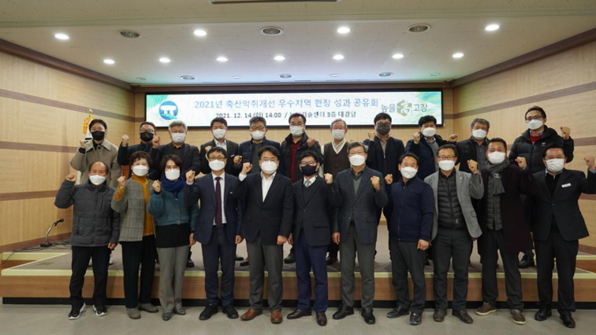 축산환경관리원(원장 이영희)은 지난 14일 전라북도 고창군 농업기술센터에서 축산악취개선 성과공유 현장 보고회’<사진>를 갖고 냄새 개선 성과 비결을 공유했다.
