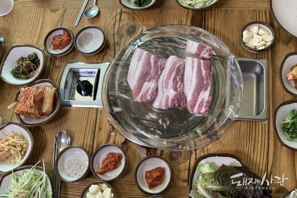 흑돼지 전문식당의 상차림@함양군