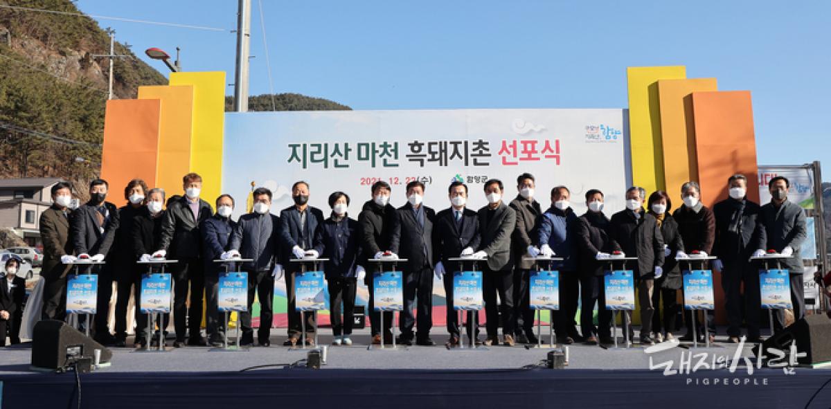 또한, 함양 지리산 마천이 대한민국을 대표하는 흑돼지 먹거리촌으로 성장하길 기원하는 다산과 다복의 상징인 흑돼지 조형물 제막식도 함께 진행되었습니다.