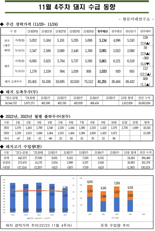 11월 4주차 돼지 수급 동향