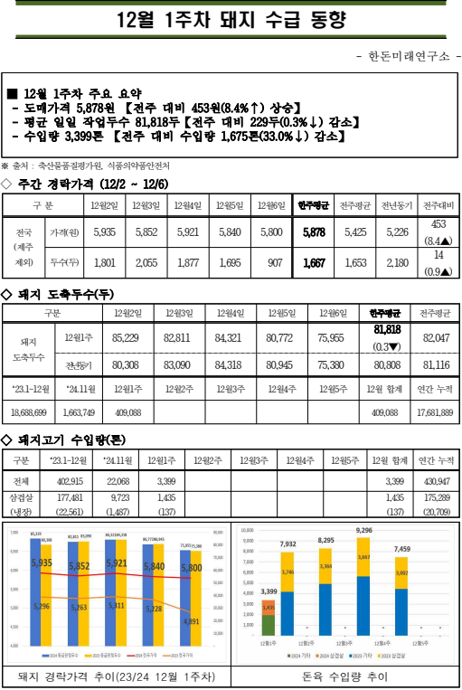 12월 1주차 돼지 수급 동향