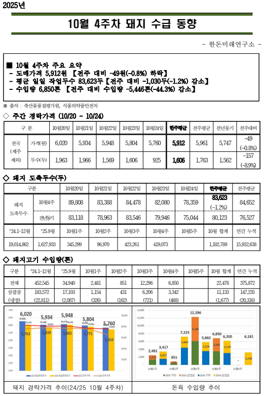 25년 10월 4주차 돼지 수급 동향