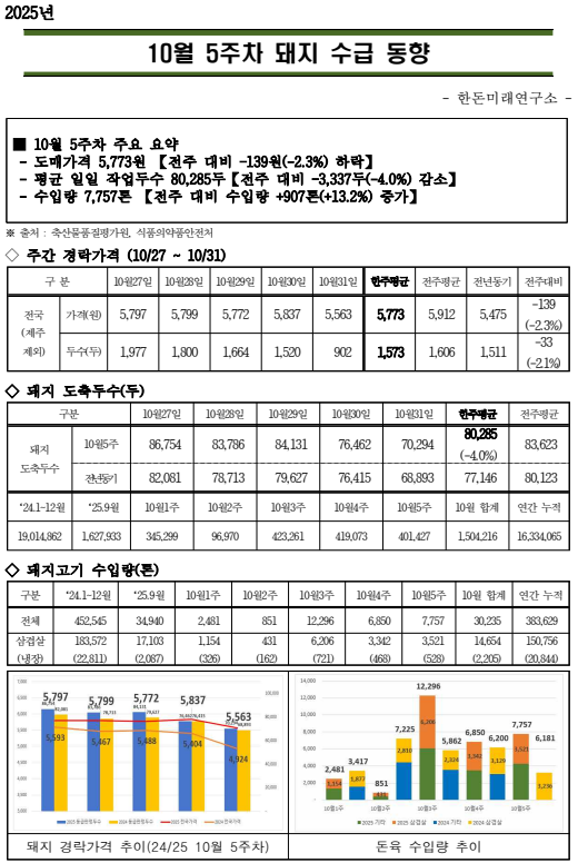 25년 10월 5주차 돼지 수급 동향