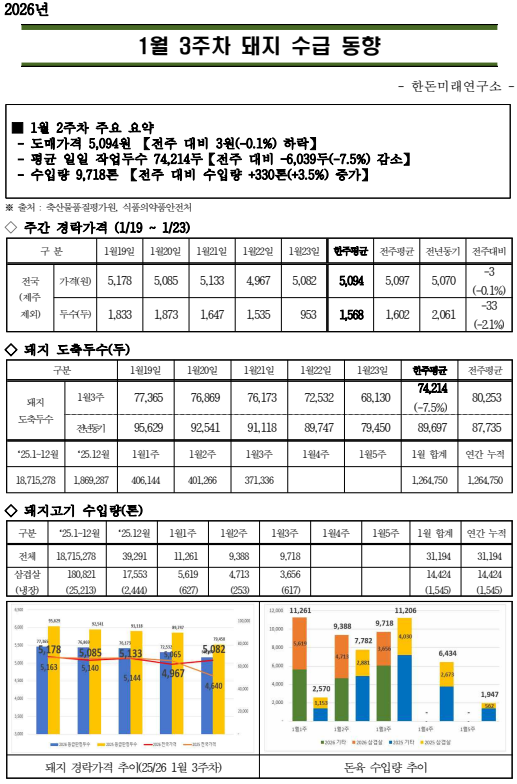 26년 1월 3주차 돼지 수급 동향