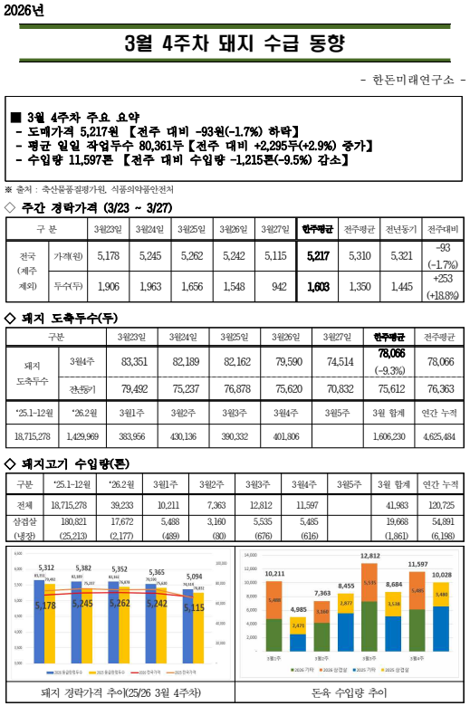 26년 3월 4주차 돼지 수급 동향
