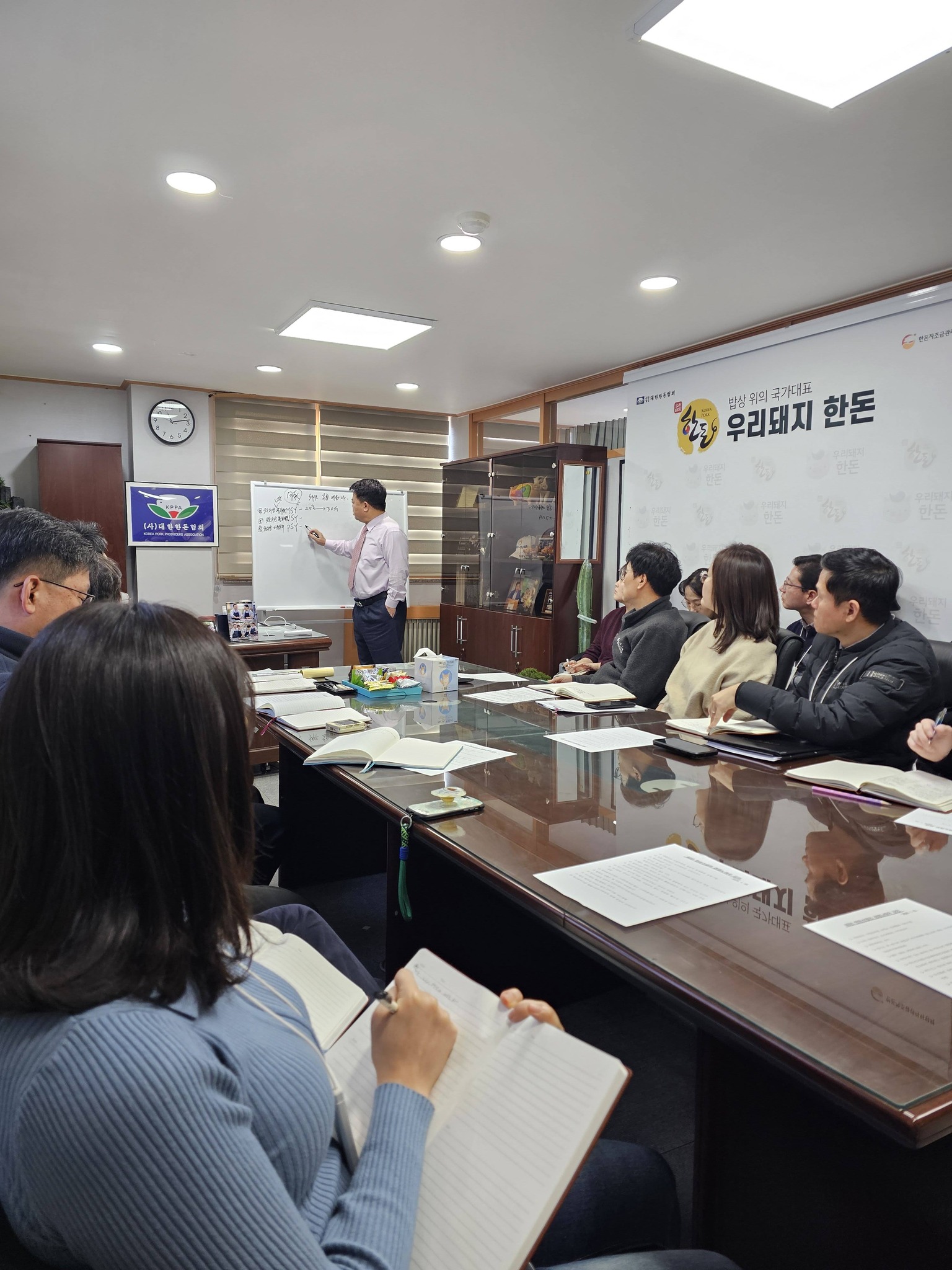 대한한돈협회 이기홍 회장이 직원들을 대상으로 두번째 양돈경영 실무특강을 진행하며 현장 중심 전문성 강화에 나섰다.