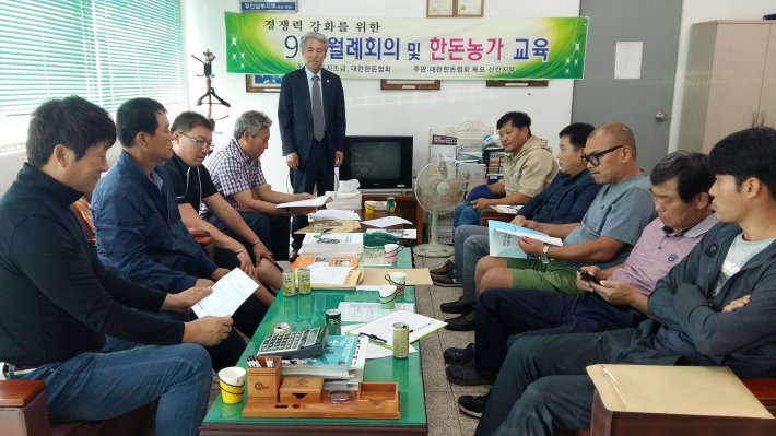일시: 2018년 9월 20일 목 오전11시 장소 : 협회사무실 참석인원:11명 회의내용 1. 아프리카 열병 발생현황 설명 2. 농장 전기안전관련 교육함 3. 도협의회 전달사항 알림 4. 자원화시설 경영관련 회의함