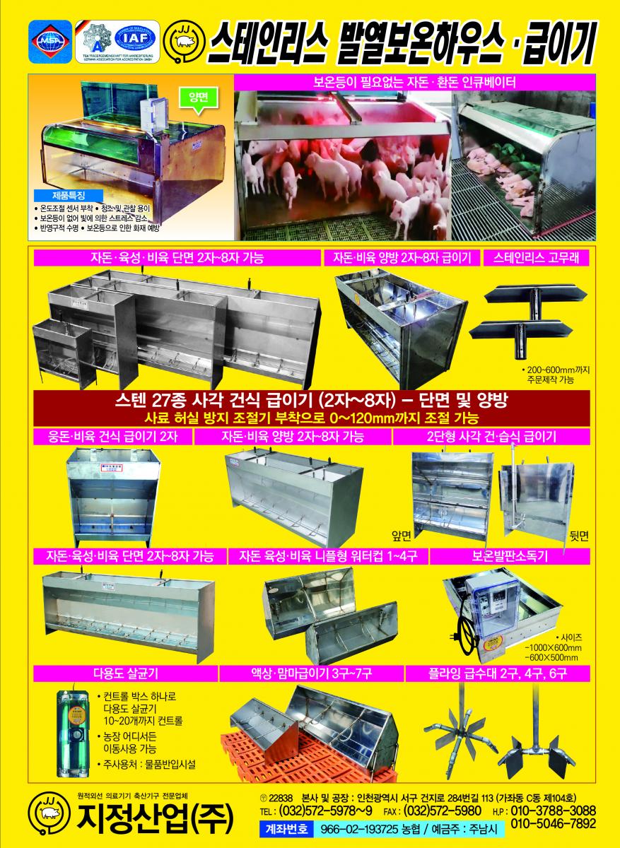 • 스테인리스 발열보온하우스, 급이기, 워터컵, 보온발판소독기, 살균기, 거세보정틀, 스테인리스 고무래 등