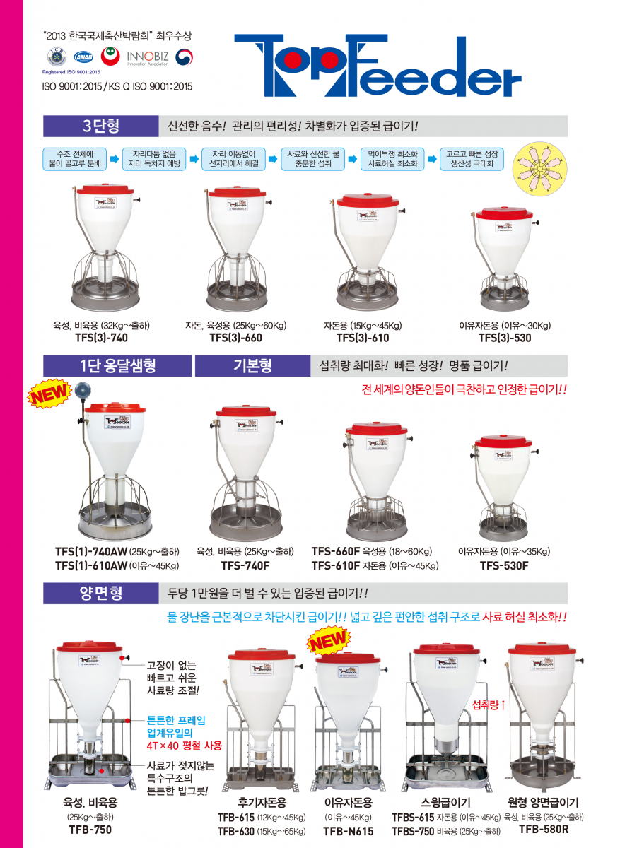 • 급이기 3단형, 기본형, 양면형, 옹달샘형, 2단형, 건식형