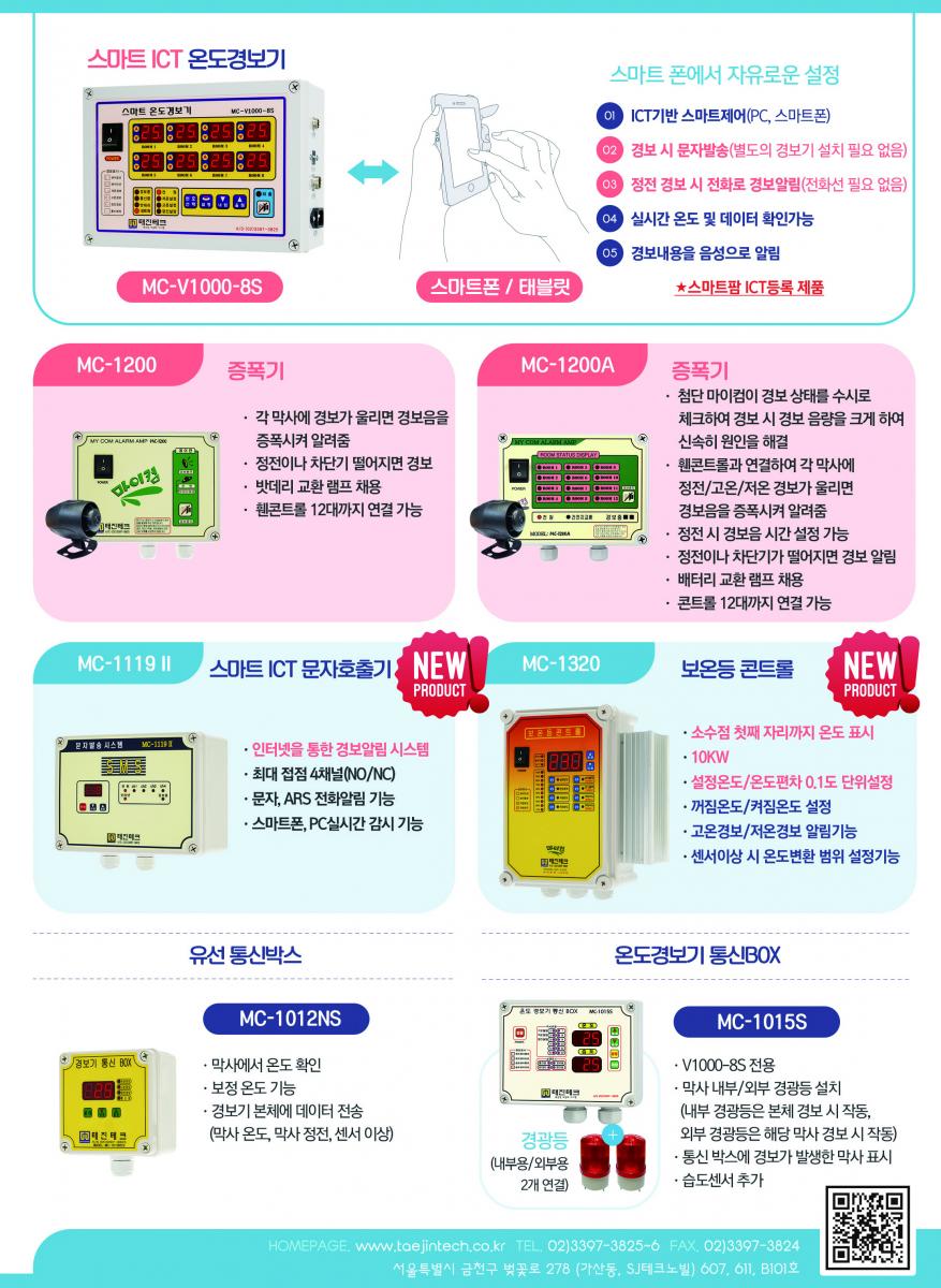 • ICT, 휀컨트롤, 사양관리기, 온도경보기, 돈방경보기, 보온등컨트롤, 유선통신박스 등
